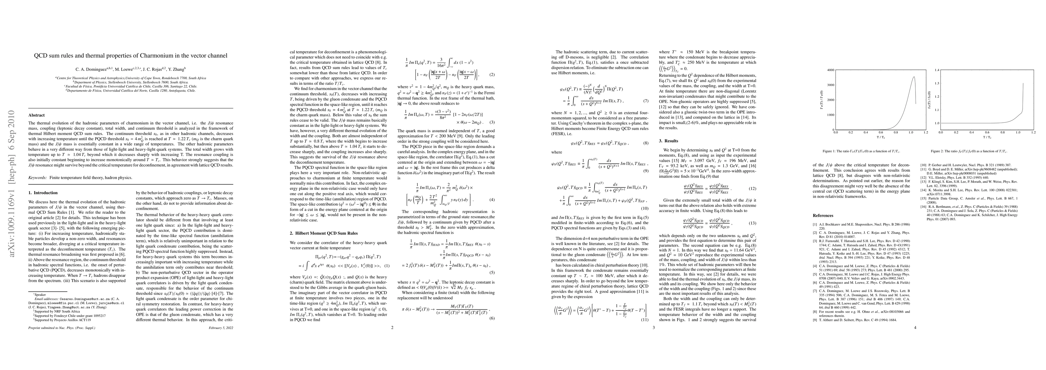 The thermal evolution of charmonium in the vector channel shows that its mass remains constant while its coupling and total width exhibit distinct temperature-dependent behaviors. This suggests the J/psi resonance may survive beyond the critical temperature for deconfinement.