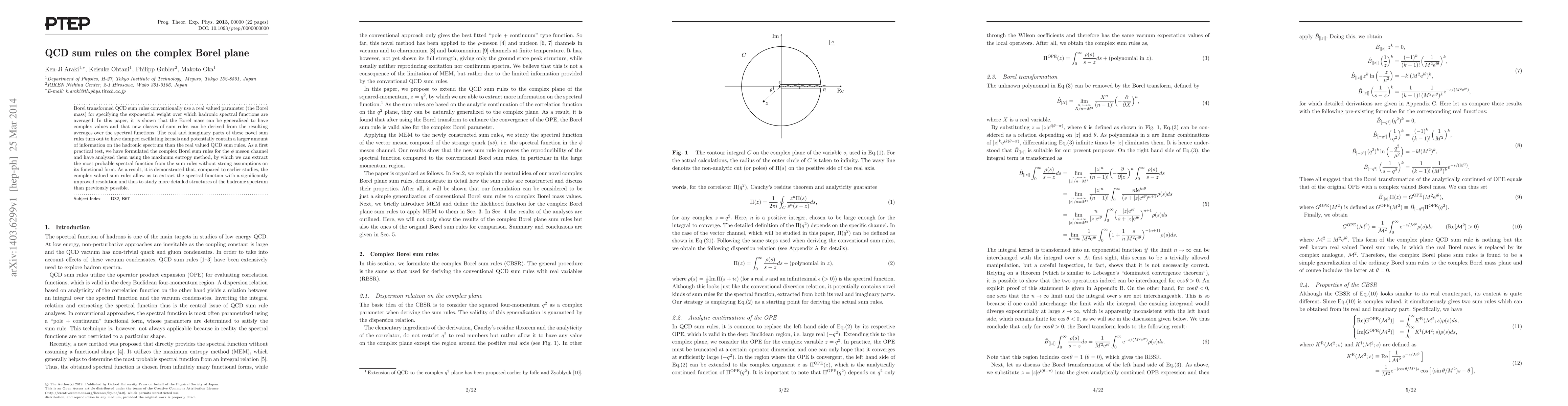 This paper generalizes QCD sum rules by introducing complex Borel masses, deriving new sum rules with damped oscillating kernels, and applying them to the phi meson channel. The complex sum rules provide a more detailed view of the hadronic spectrum compared to traditional real-valued methods.