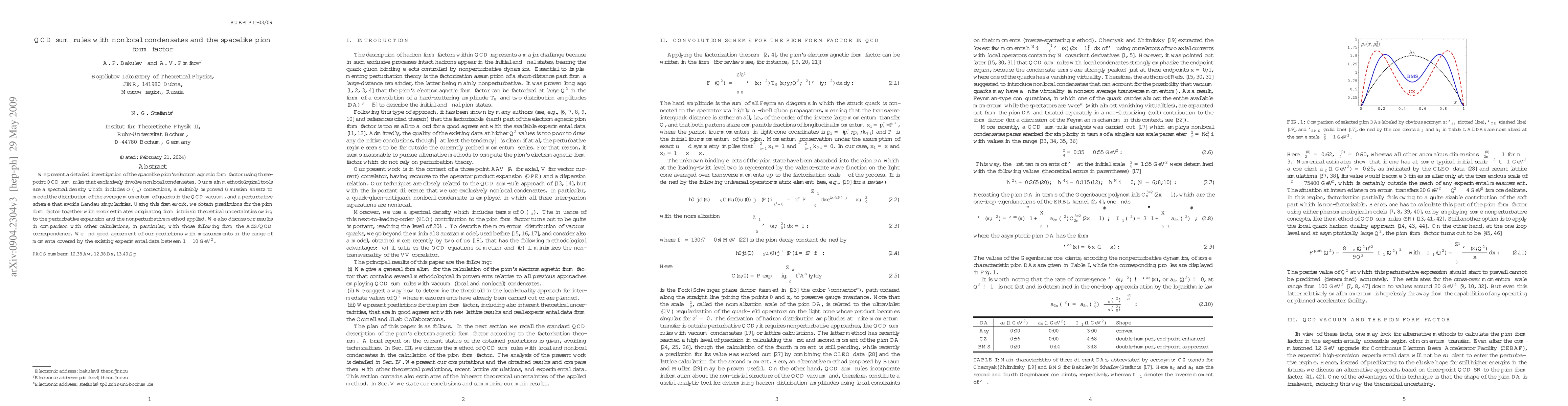 This paper investigates the spacelike pion's electromagnetic form factor using three-point QCD sum rules with nonlocal condensates, employing $O(\alpha_s)$ corrections and a Gaussian ansatz. The study finds good agreement with experimental data in the momentum range of 1-10 GeV$^2$.