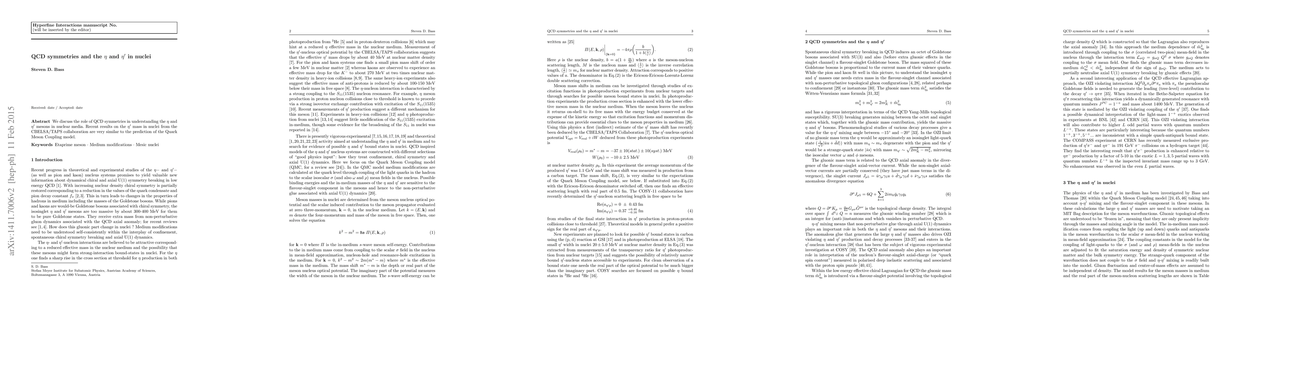 Summary: This paper explores how QCD symmetries influence the behavior of eta and etaprime mesons within nuclear environments, highlighting recent findings on the etaprime mass that align closely with predictions from the Quark Meson Coupling model.