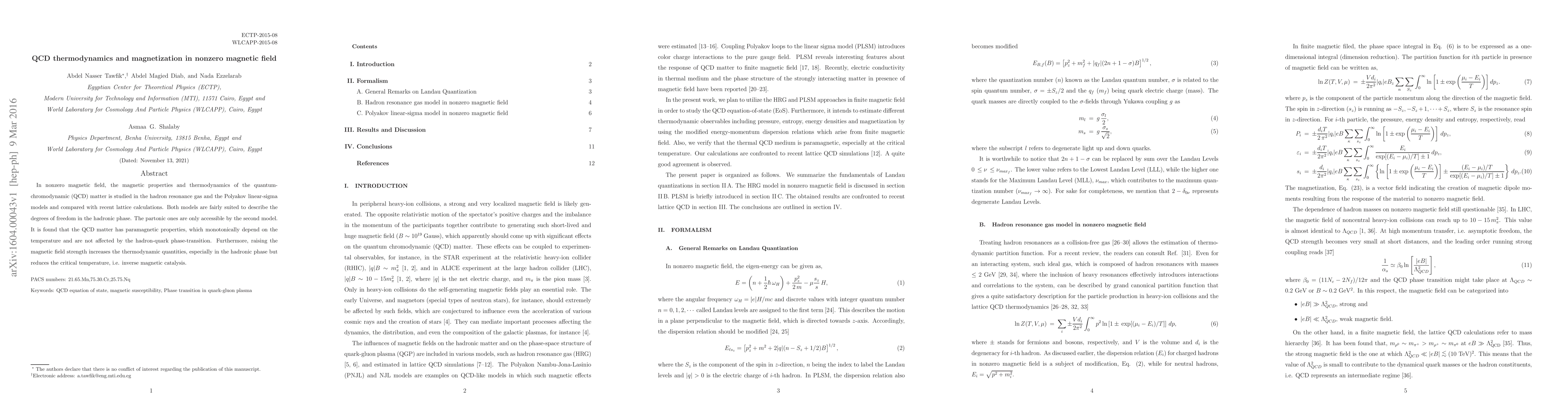 In nonzero magnetic field, the magnetic properties and thermodynamics of the quantum-chromodynamic (QCD) matter is studied in the hadron resonance gas and the Polyakov linear-sigma models and compared with recent lattice calculations. Both models are fairly suited to describe the degrees of freedom in the hadronic phase. The partonic ones are only accessible by the second model. It is found that the QCD matter has paramagnetic properties, which monotonically depend on the temperature and are not affected by the hadron-quark phase-transition. Furthermore, raising the magnetic field strength increases the thermodynamic quantities, especially in the hadronic phase but reduces the critical temperature, i.e. inverse magnetic catalysis.