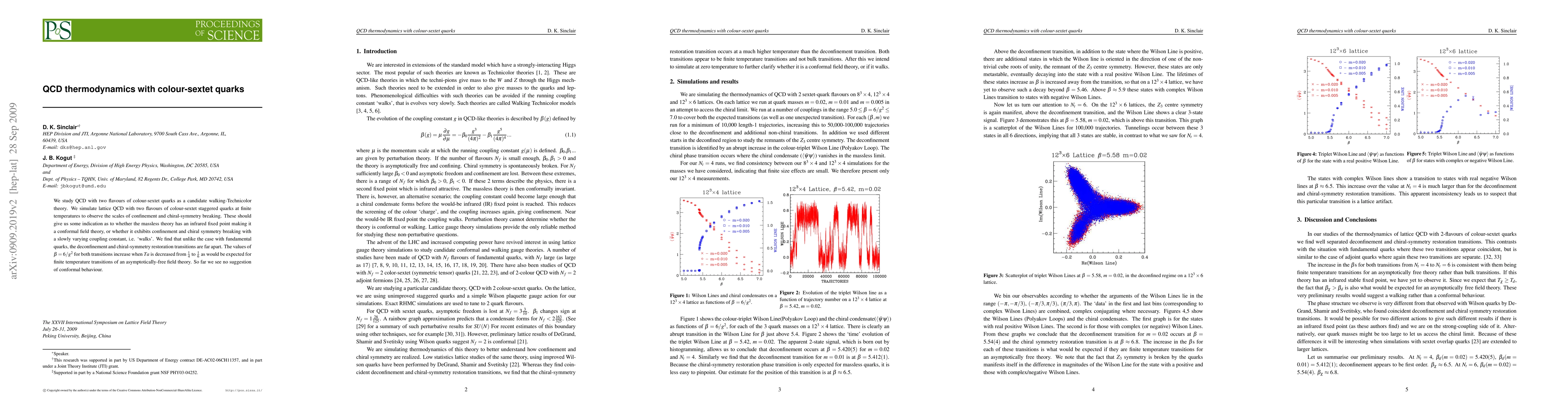 This study investigates QCD with colour-sextet quarks in a walking-Technicolor framework, finding distinct deconfinement and chiral-symmetry breaking transitions, and no evidence for conformal behaviour. The simulation results suggest a slowly varying coupling constant rather than an infrared fixed point.