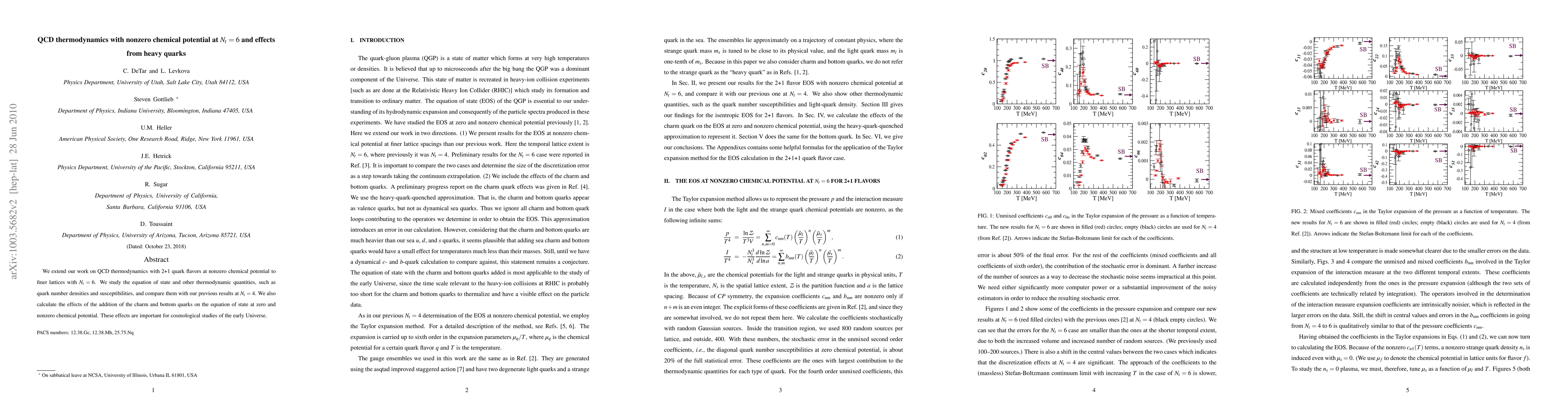 This study refines QCD thermodynamics with 2+1 flavors at nonzero chemical potential on a $N_t=6$ lattice, detailing the equation of state and thermodynamic quantities compared to $N_t=4$. It also assesses the impact of charm and bottom quarks on the equation of state, crucial for early Universe cosmology.