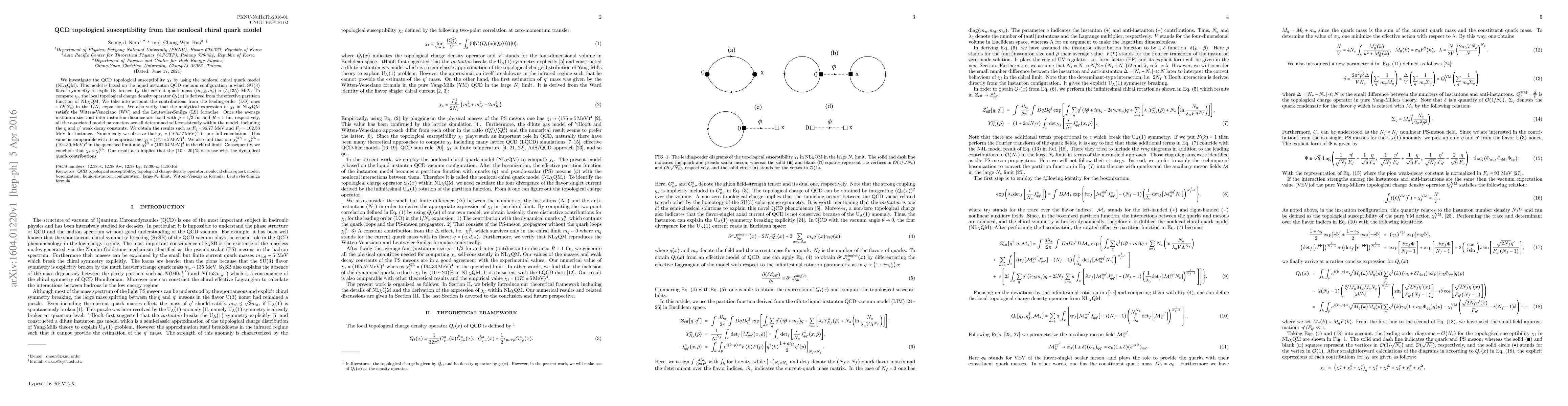 This paper investigates the QCD topological susceptibility $\chi_t$ using the nonlocal chiral quark model (NL$\chi$QM), finding $\chi_t=(165.57\,\mathrm{MeV})^4$ and showing agreement with empirical values, while also exploring the implications of dynamical quark contributions.
