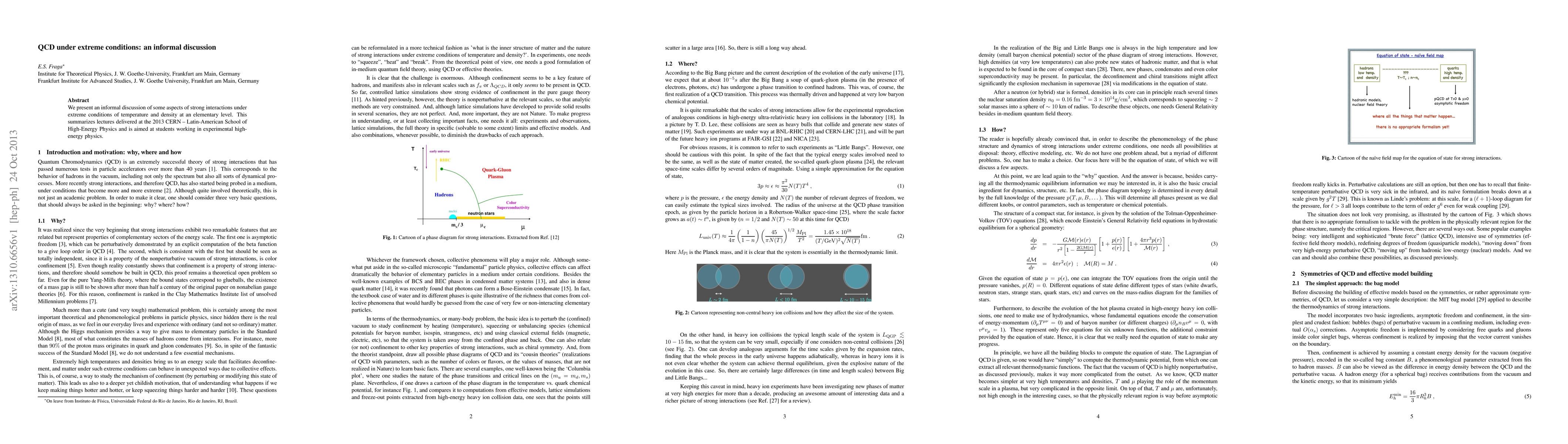 The paper presents an informal discussion on strong interactions under extreme conditions, summarizing lectures from the 2013 CERN -- Latin-American School of High-Energy Physics, targeting students in experimental high-energy physics.