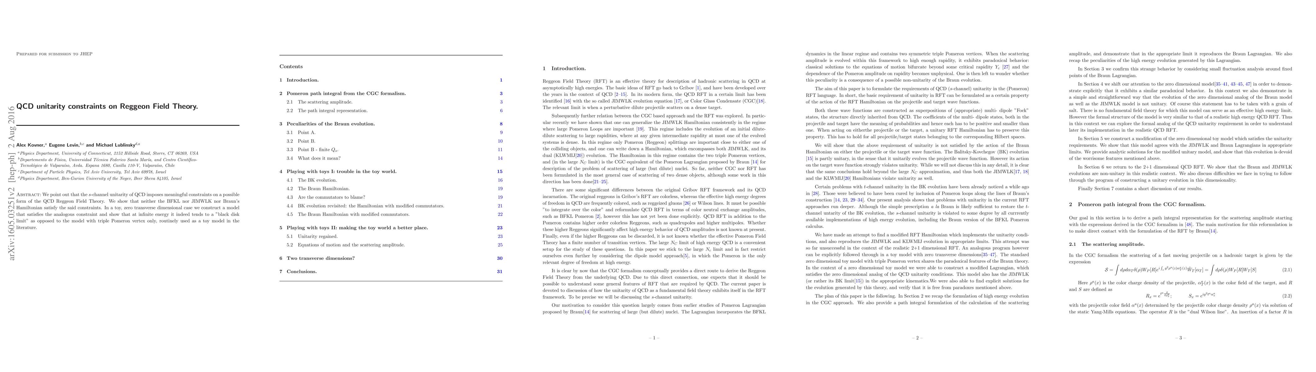 Summary: The paper demonstrates that $s$-channel unitarity in QCD imposes significant constraints on Reggeon Field Theory, finding that neither BFKL, JIMWLK, nor Braun's Hamiltonian meet these constraints. A simplified model in zero transverse dimensions is constructed that satisfies these constraints and approaches a "black disk limit" at infinite energy.