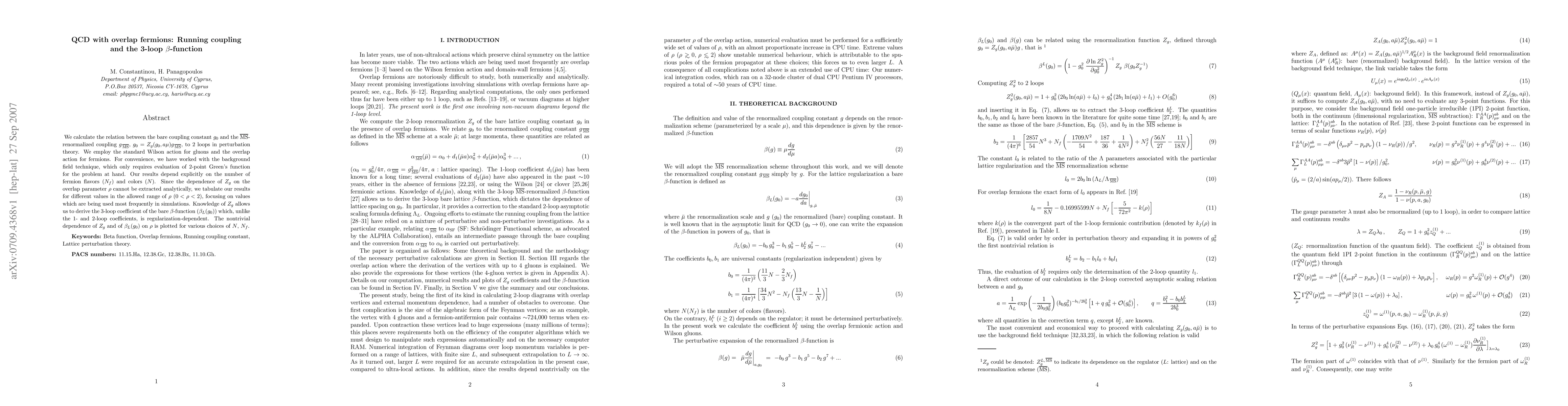This research calculates the relationship between the bare coupling constant and its MSbar-renormalized counterpart in QCD with overlap fermions, finding that it depends on the number of flavors and colors, and reveals a regularization-dependent 3-loop beta-function coefficient.