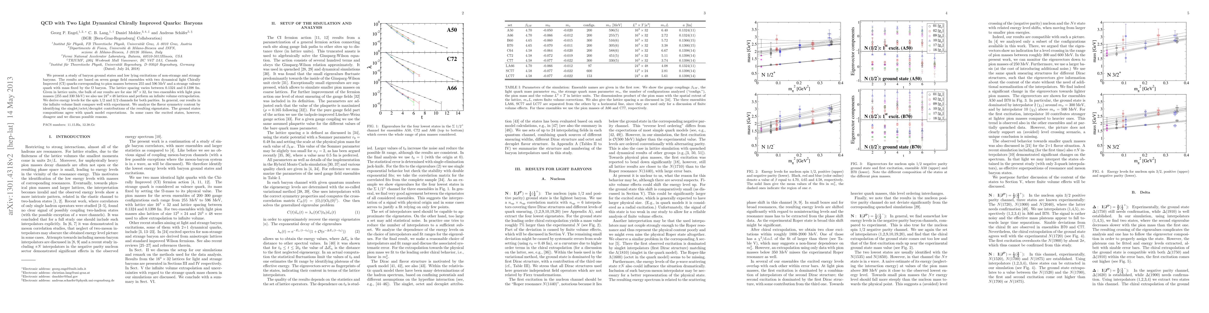This study investigates baryon ground states and low-lying excitations using two dynamical chirally improved quarks and lattice QCD, finding results that generally align with experimental data. The analysis identifies the flavor symmetry contributions and confirms ground state compositions, though some excited states show discrepancies.