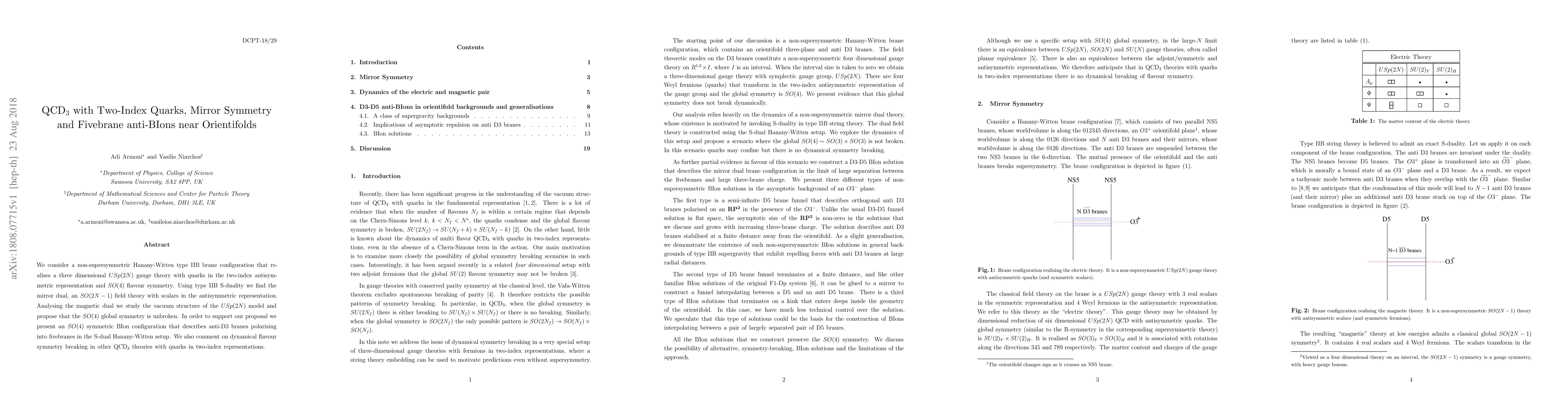 Researchers study a non-supersymmetric brane configuration that gives rise to a 3D USp(2N) gauge theory with two-index quarks, proposing the SO(4) global symmetry is unbroken.