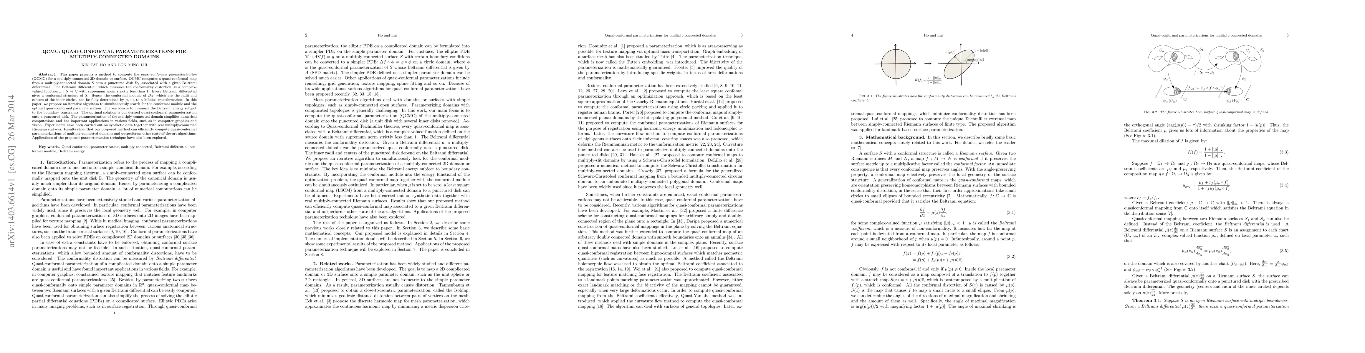 The paper introduces a method (QCMC) for computing quasi-conformal parameterizations for multiply-connected 2D domains, achieving optimal parameterizations by minimizing Beltrami energy. The technique simplifies numerical computations and is shown to outperform existing algorithms in computer graphics and vision applications.