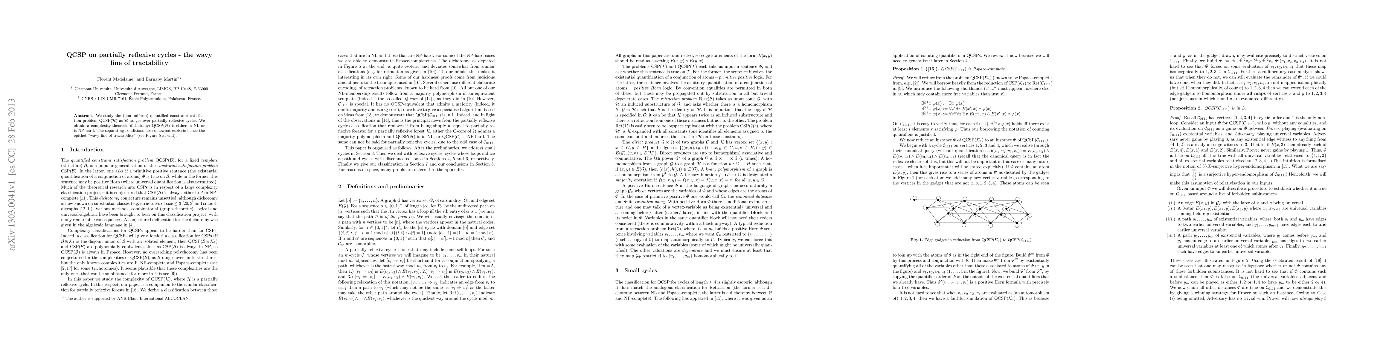 We study the (non-uniform) quantified constraint satisfaction problem QCSP(H) as H ranges over partially reflexive cycles. We obtain a complexity-theoretic dichotomy: QCSP(H) is either in NL or is NP-hard. The separating conditions are somewhat esoteric hence the epithet "wavy line of tractability".
