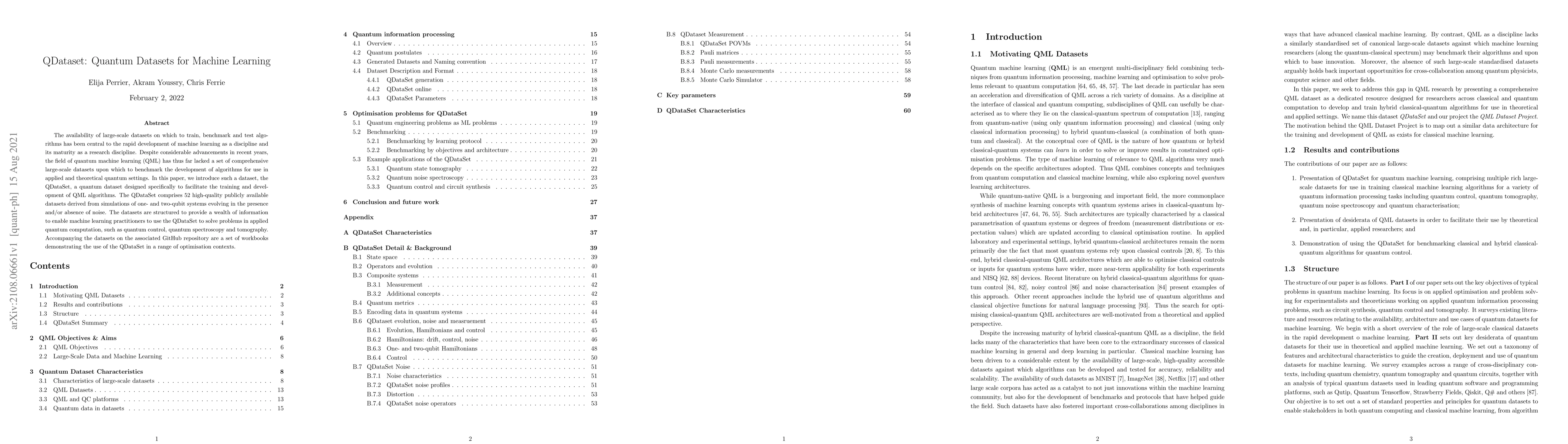 A new quantum dataset, QDataSet, has been introduced to facilitate the development of machine learning algorithms for quantum computing, comprising 52 high-quality datasets for training and benchmarking.