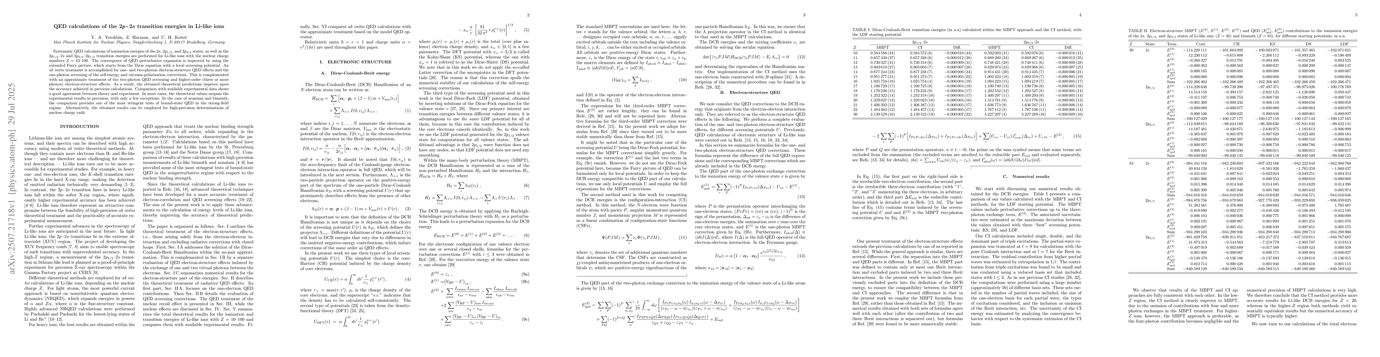 The research extends previous calculations by incorporating higher-order electron-structure effects, improving convergence, and providing more accurate predictions for transition energies in Li-like ions across a wide range of nuclear charges.