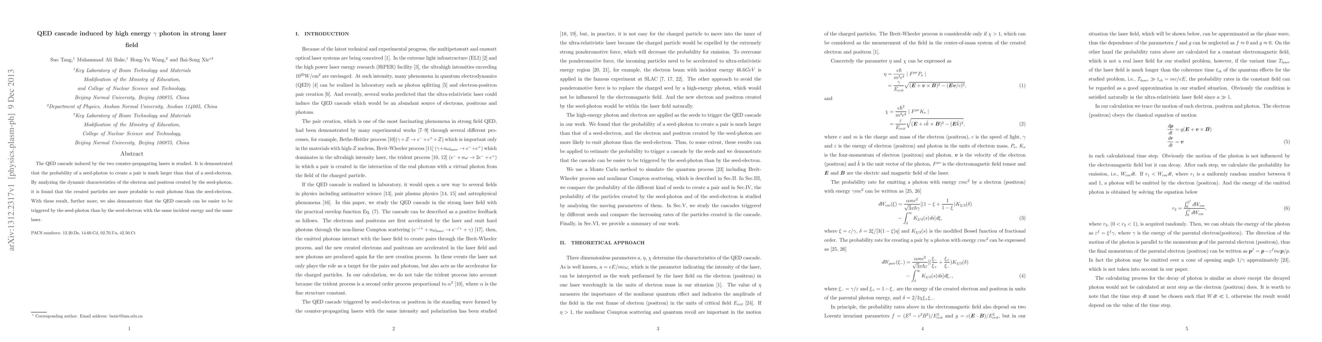 The QED cascade induced by the two counter-propagating lasers is studied. It is demonstrated that the probability of a seed-photon to create a pair is much larger than that of a seed-electron. By analyzing the dynamic characteristics of the electron and positron created by the seed-photon, it is found that the created particles are more probable to emit photons than the seed-electron. With these result, further more, we also demonstrate that the QED cascade can be easier to be triggered by the seed-photon than by the seed-electron with the same incident energy and the same laser.