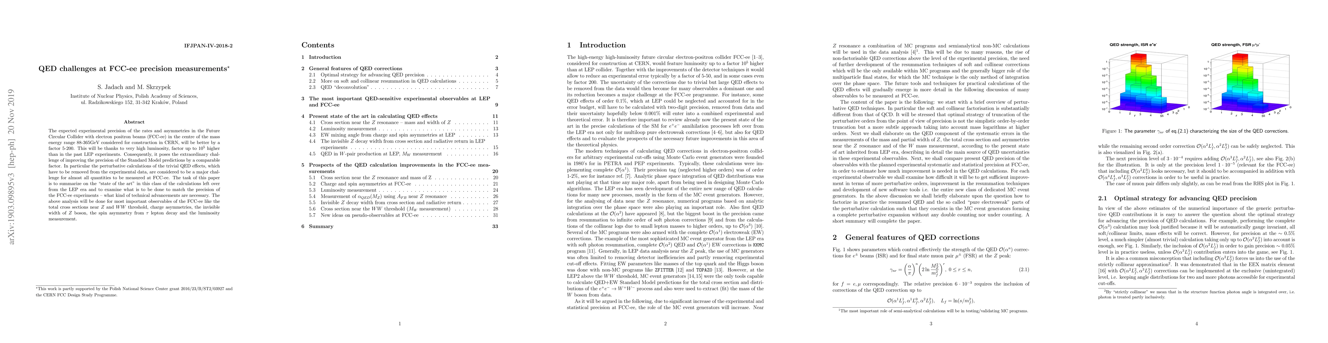 This paper reviews the current state of QED calculations for the FCC-ee precision measurements, highlighting the significant challenge of improving the precision of Standard Model predictions to match the experimental advancements. It focuses on the technical advancements needed to refine perturbative QED effects for key observables such as total cross sections, charge asymmetries, and luminosity measurements.
