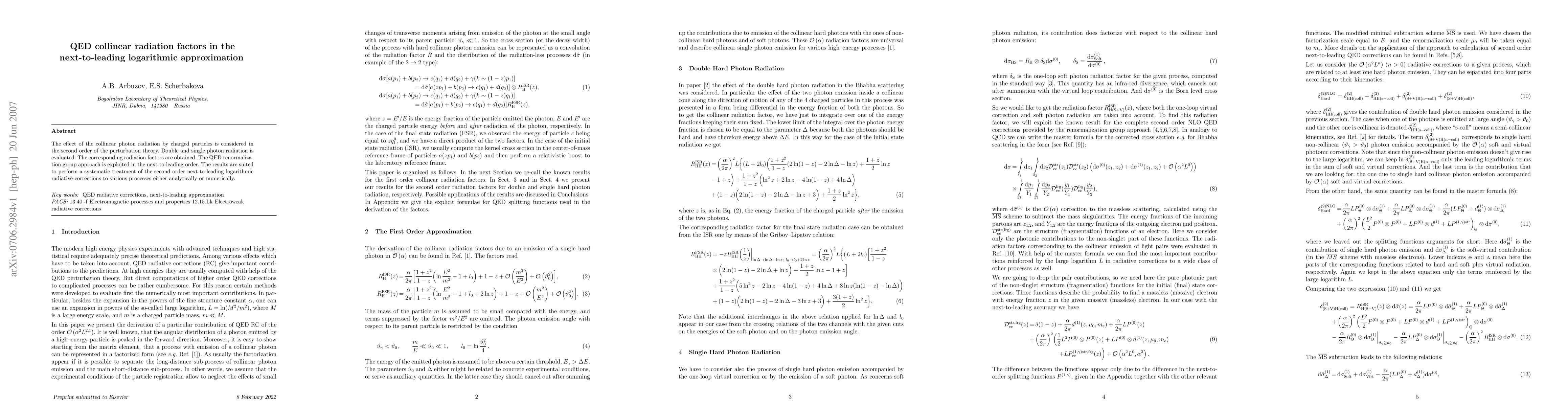 The effect of the collinear photon radiation by charged particles is considered in the second order of the perturbation theory. Double and single photon radiation is evaluated. The corresponding radiation factors are obtained. The QED renormalization group approach is exploited in the next-to-leading order. The results are suited to perform a systematic treatment of the second order next-to-leading logarithmic radiative corrections to various processes either analytically or numerically.