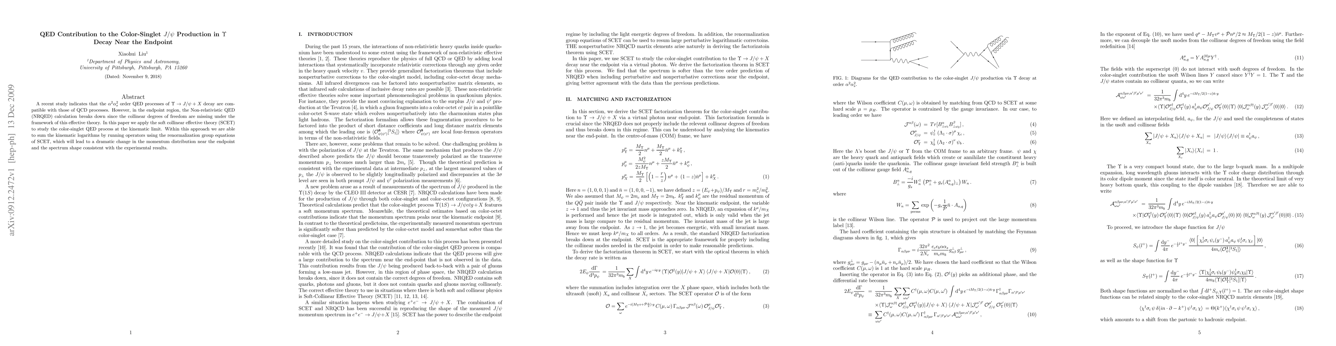 A recent study indicates that the $\alpha^2\alpha_s^2$ order QED processes of $\Upsilon \to \jpsi + X$ decay are compatible with those of QCD processes. However, in the endpoint region, the Non-relativistic QED (NRQED) calculation breaks down since the collinear degrees of freedom are missing under the framework of this effective theory. In this paper we apply the soft collinear effective theory (SCET) to study the color-singlet QED process at the kinematic limit. Within this approach we are able to sum the kinematic logarithms by running operators using the renormalization group equations of SCET, which will lead to a dramatic change in the momentum distribution near the endpoint and the spectrum shape consistent with the experimental results.