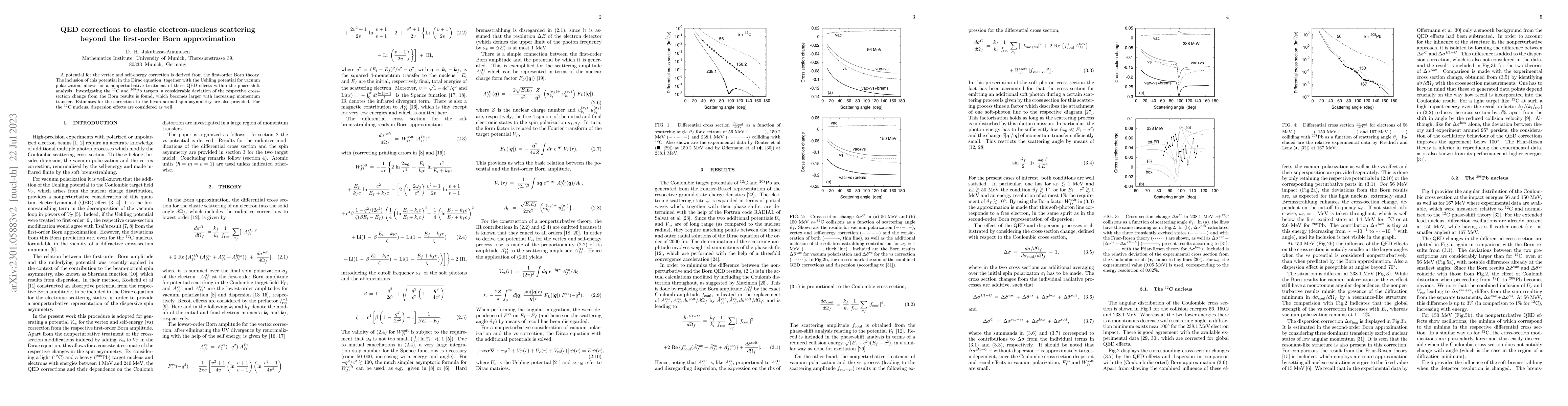 This paper derives a potential for vertex and self-energy corrections to improve the first-order Born approximation in elastic electron-nucleus scattering, incorporating QED effects via the Dirac equation. It finds significant deviations in cross-section changes for 12C and 208Pb targets compared to Born results, especially with higher momentum transfer, and provides estimates for the beam-normal spin asymmetry correction.
