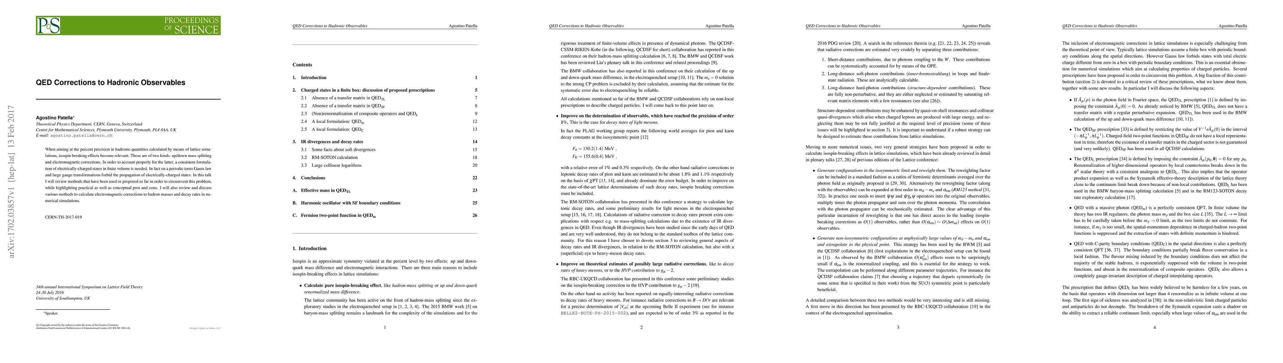When aiming at the percent precision in hadronic quantities calculated by means of lattice simulations, isospin breaking effects become relevant. These are of two kinds: up/down mass splitting and electromagnetic corrections. In order to account properly for the latter, a consistent formulation of electrically-charged states in finite volume is needed. In fact on a periodic torus Gauss law and large gauge transformations forbid the propagation of electrically-charged states. In this talk I will review methods that have been used or proposed so far in order to circumvent this problem, while highlighting practical as well as conceptual pros and cons. I will also review and discuss various methods to calculate electromagnetic corrections to hadron masses and decay rates in numerical simulations.