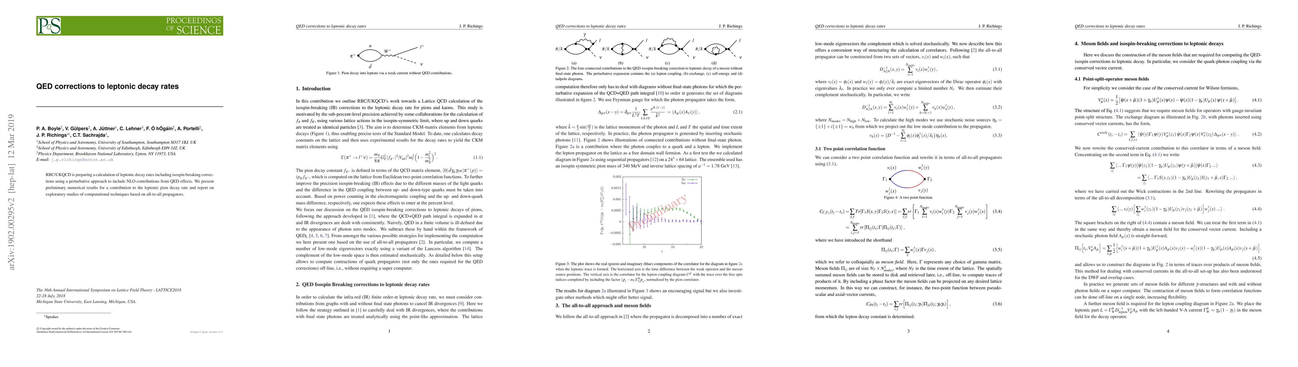 This paper reports on preliminary calculations of leptonic decay rates, specifically for pion decay, incorporating QED corrections using a perturbative approach. The study explores computational techniques involving all-to-all propagators for isospin breaking corrections.