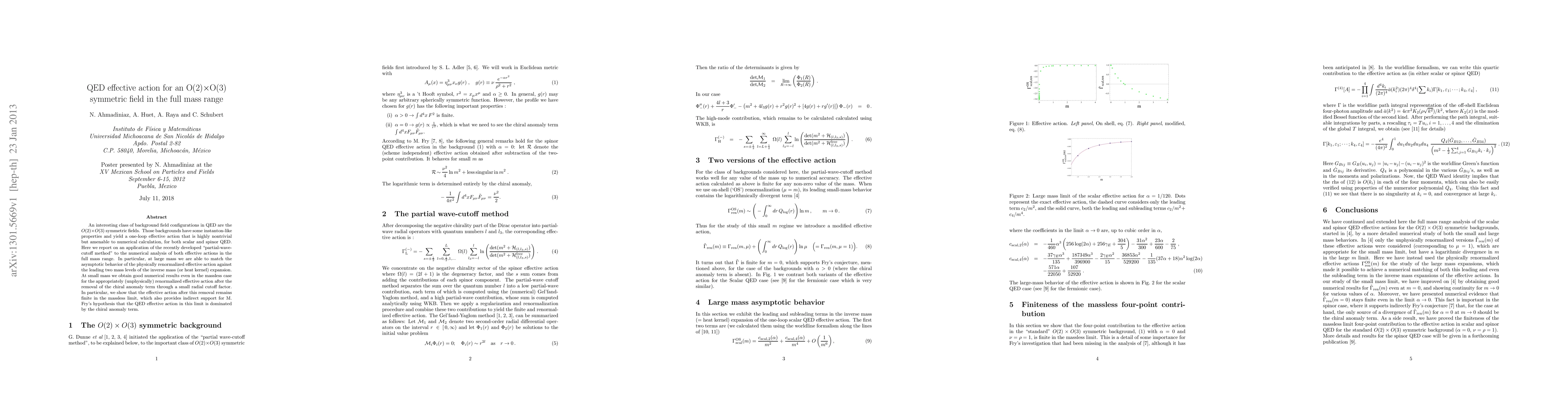 This paper investigates the QED effective action for O(2)xO(3) symmetric fields using a numerical partial-wave-cutoff method across the full mass range. It demonstrates that the effective action remains finite even in the massless limit after removing the chiral anomaly term, supporting the hypothesis that the chiral anomaly dominates the QED effective action in this limit.