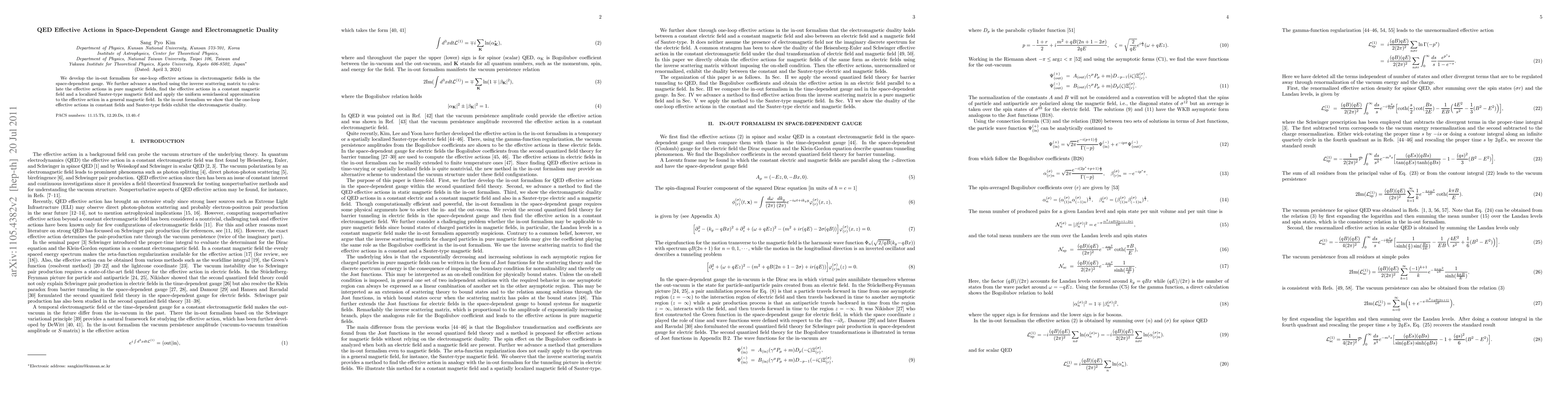 This paper develops an in-out formalism for one-loop effective actions in space-dependent gauge and electromagnetic fields, utilizing an inverse scattering matrix method to calculate these actions in pure magnetic fields. The study reveals electromagnetic duality in the one-loop effective actions under constant and localized magnetic fields.