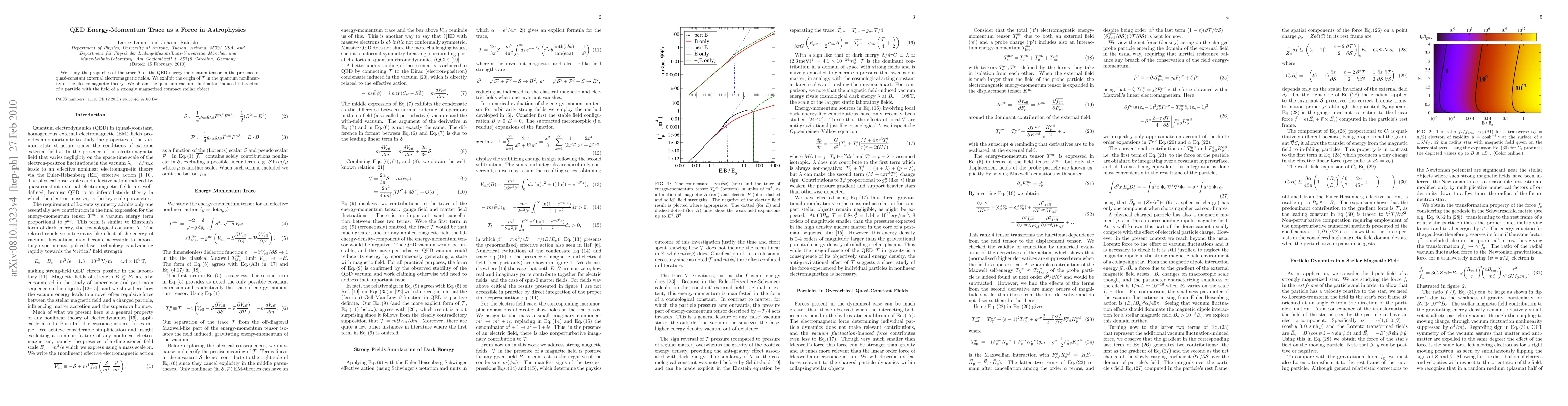 We study the properties of the trace $\Tmm$ of the QED energy-momentum tensor in the presence of quasi-constant external electromagnetic fields. We exhibit the origin of $\Tmm$ in the quantum nonlinearity of the electromagnetic theory. We obtain the quantum vacuum fluctuation-induced interaction of a particle with the field of a strongly magnetized compact stellar object.