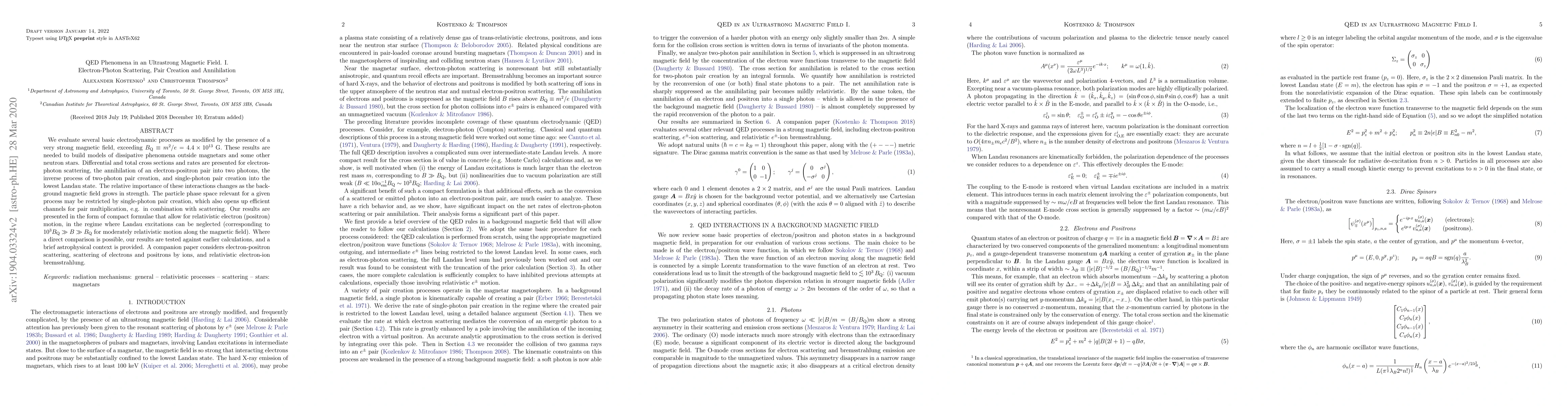 We evaluate several basic electrodynamic processes as modified by the presence of a very strong magnetic field, exceeding $B_{\rm Q} \equiv m^2/e = 4.4\times 10^{13}$ G. These results are needed to build models of dissipative phenomena outside magnetars and some other neutron stars. Differential and total cross sections and rates are presented for electron-photon scattering, the annihilation of an electron-positron pair into two photons, the inverse process of two-photon pair creation, and single-photon pair creation into the lowest Landau state. The relative importance of these interactions changes as the background magnetic field grows in strength. The particle phase space relevant for a given process may be restricted by single-photon pair creation, which also opens up efficient channels for pair multiplication, e.g. in combination with scattering. Our results are presented in the form of compact formulae that allow for relativistic electron (positron) motion, in the regime where Landau excitations can be neglected (corresponding to $10^3B_{\rm Q} \gg B \gg B_{\rm Q}$ for moderately relativistic motion along the magnetic field). Where a direct comparison is possible, our results are tested against earlier calculations, and a brief astrophysical context is provided. A companion paper considers electron-positron scattering, scattering of electrons and positrons by ions, and relativistic electron-ion bremsstrahlung.