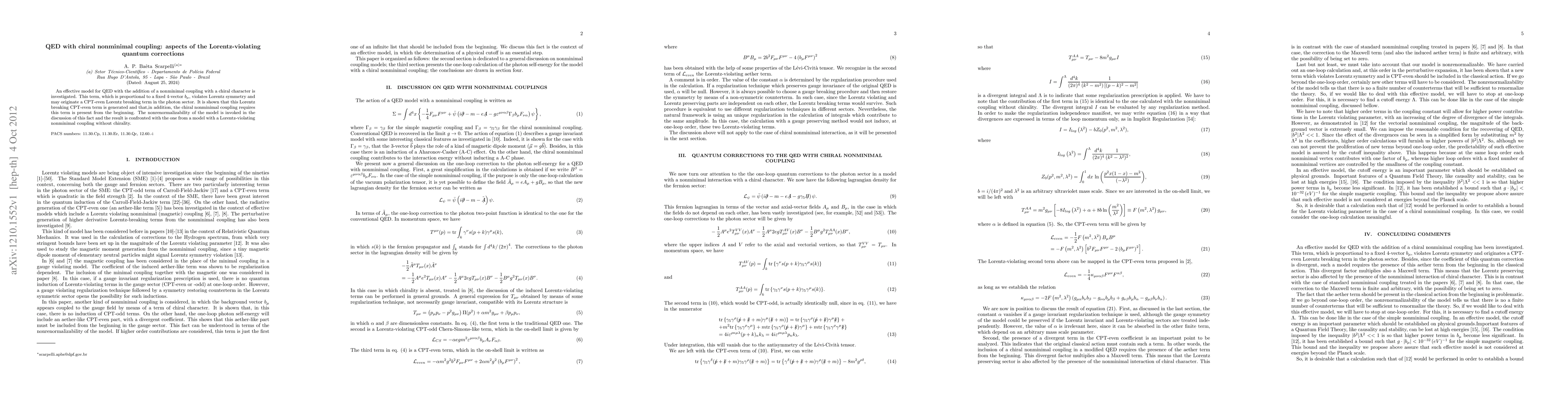 This research investigates an effective model of QED incorporating a chiral nonminimal coupling that violates Lorentz symmetry, generating a CPT-even Lorentz breaking term in the photon sector. The study concludes that this term is necessary and nonrenormalizability of the model is discussed in comparison to a similar model without chirality.