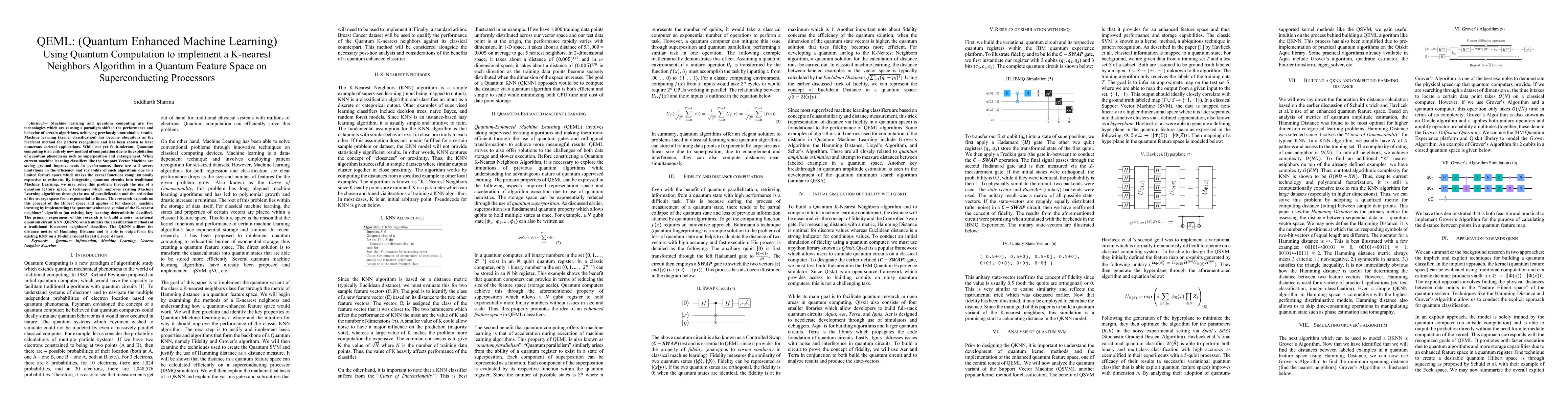 Machine learning and quantum computing are two technologies that are causing a paradigm shift in the performance and behavior of certain algorithms, achieving previously unattainable results. Machine learning (kernel classification) has become ubiquitous as the forefront method for pattern recognition and has been shown to have numerous societal applications. While not yet fault-tolerant, Quantum computing is an entirely new method of computation due to its exploitation of quantum phenomena such as superposition and entanglement. While current machine learning classifiers like the Support Vector Machine are seeing gradual improvements in performance, there are still severe limitations on the efficiency and scalability of such algorithms due to a limited feature space which makes the kernel functions computationally expensive to estimate. By integrating quantum circuits into traditional ML, we may solve this problem through the use of quantum feature space, a technique that improves existing Machine Learning algorithms through the use of parallelization and the reduction of the storage space from exponential to linear. This research expands on this concept of the Hilbert space and applies it for classical machine learning by implementing the quantum-enhanced version of the K nearest neighbors algorithm. This paper first understands the mathematical intuition for the implementation of quantum feature space and successfully simulates quantum properties and algorithms like Fidelity and Grover's Algorithm via the Qiskit python library and the IBM Quantum Experience platform. The primary experiment of this research is to build a noisy variational quantum circuit KNN (QKNN) which mimics the classification methods of a traditional KNN classifier. The QKNN utilizes the distance metric of Hamming Distance and is able to outperform the existing KNN on a 10-dimensional Breast Cancer dataset.