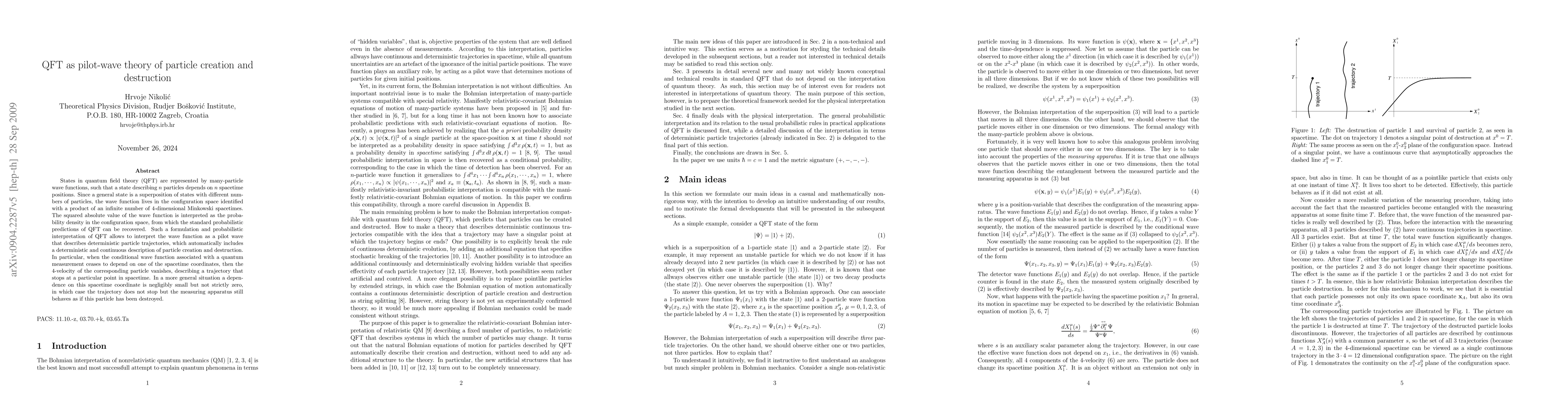 This paper proposes a pilot-wave interpretation of quantum field theory (QFT) where the wave function deterministically guides particle trajectories, encompassing particle creation and destruction. The probabilistic predictions of QFT arise from the configuration space probability density derived from the wave function, which ceases to depend on a particle's spacetime coordinate during measurement, effectively "destroying" the particle.