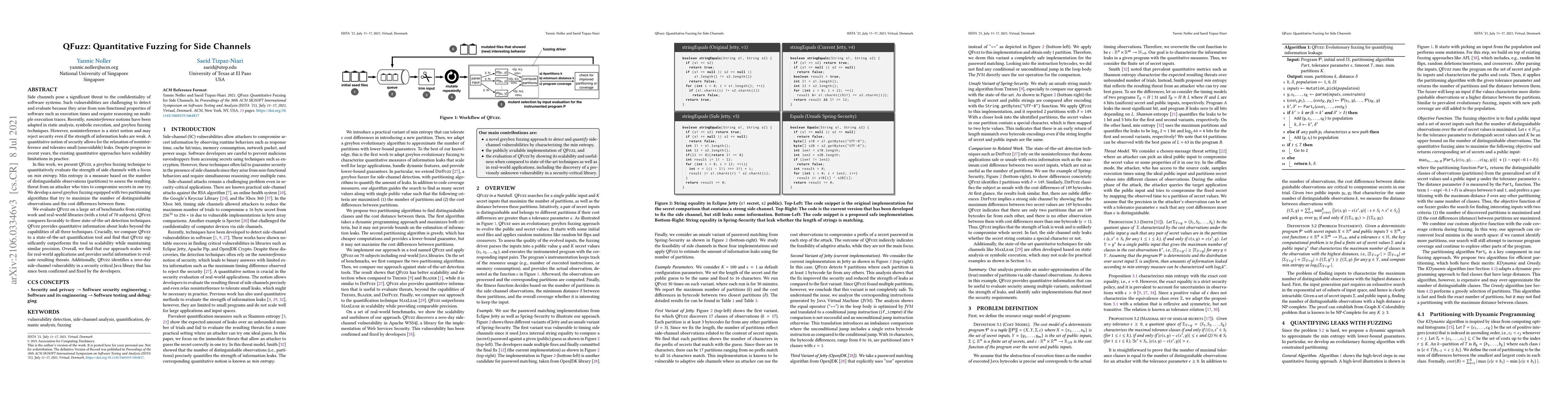 Researchers introduced QFuzz, a greybox fuzzing technique that evaluates side channel strengths with a focus on min entropy, offering scalable and precise threat assessment, outperforming state-of-the-art detection techniques.