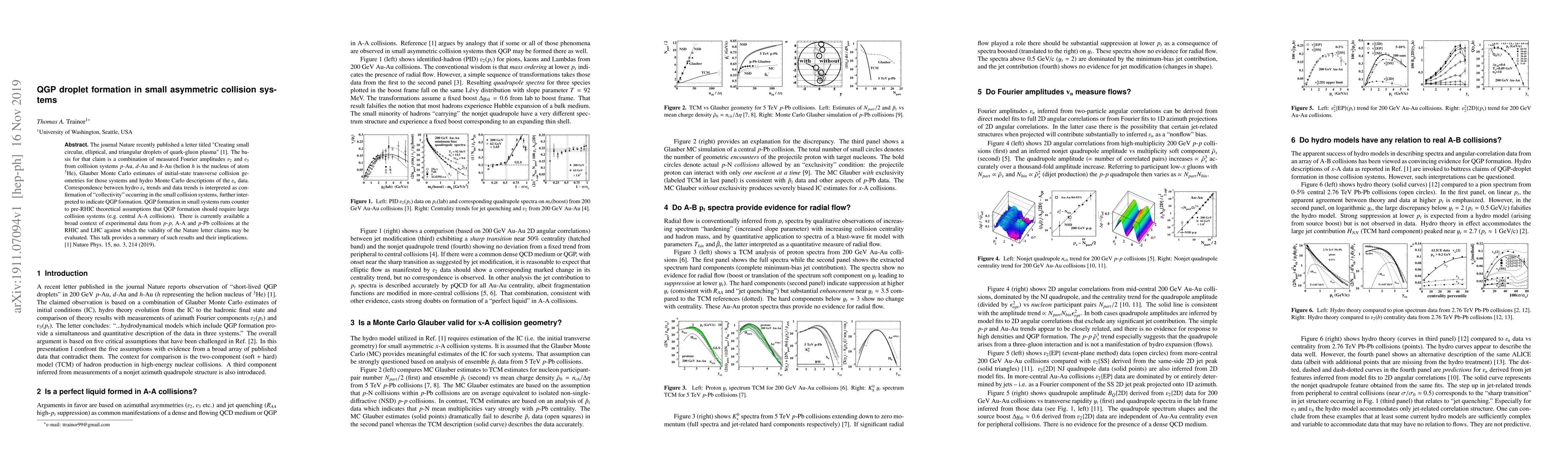 This paper discusses the formation of quark-gluon plasma (QGP) droplets in small asymmetric collision systems, evidenced by the correspondence between hydro and measured Fourier amplitudes. Contrary to pre-RHIC theories, the findings suggest QGP can form in systems smaller than large central collisions, challenging existing assumptions.