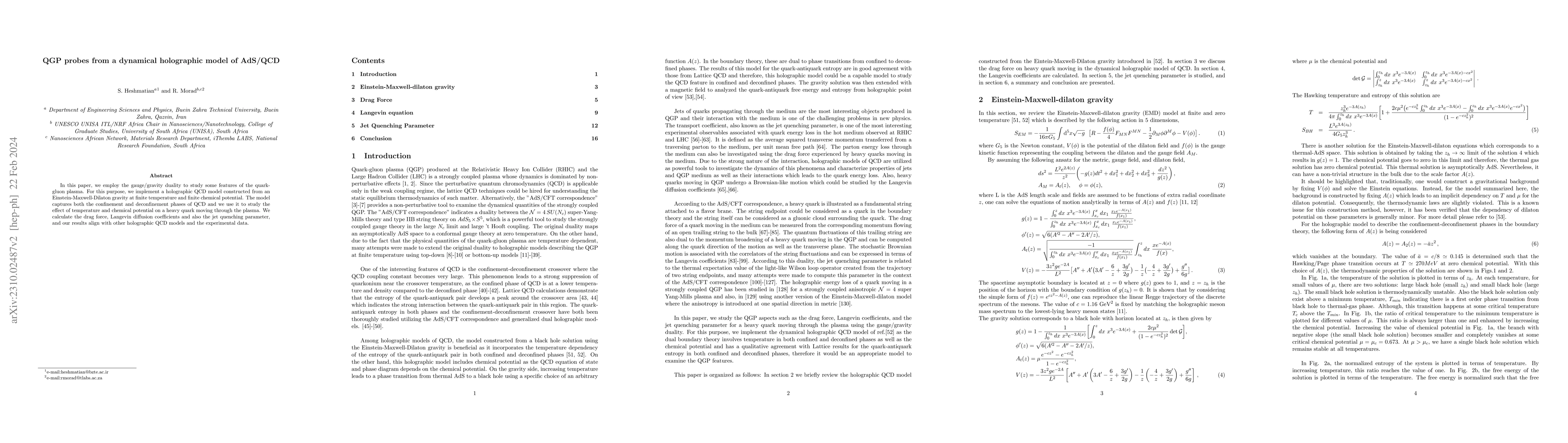 The paper presents a detailed analysis of drag force, Langevin diffusion coefficients, and jet quenching parameter using a dynamical holographic QCD model, providing quantitative comparisons with experimental data and other holographic models.