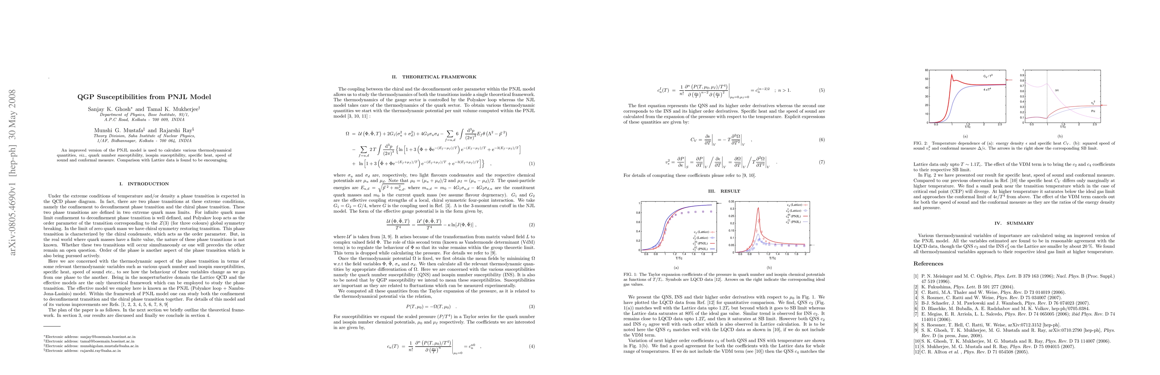 This paper utilizes an enhanced PNJL model to compute several thermodynamic quantities, including quark number and isospin susceptibilities, and compares these results favorably with lattice data. The study highlights the model's effectiveness in describing the Quantum Chromodynamics (QGP) phase.