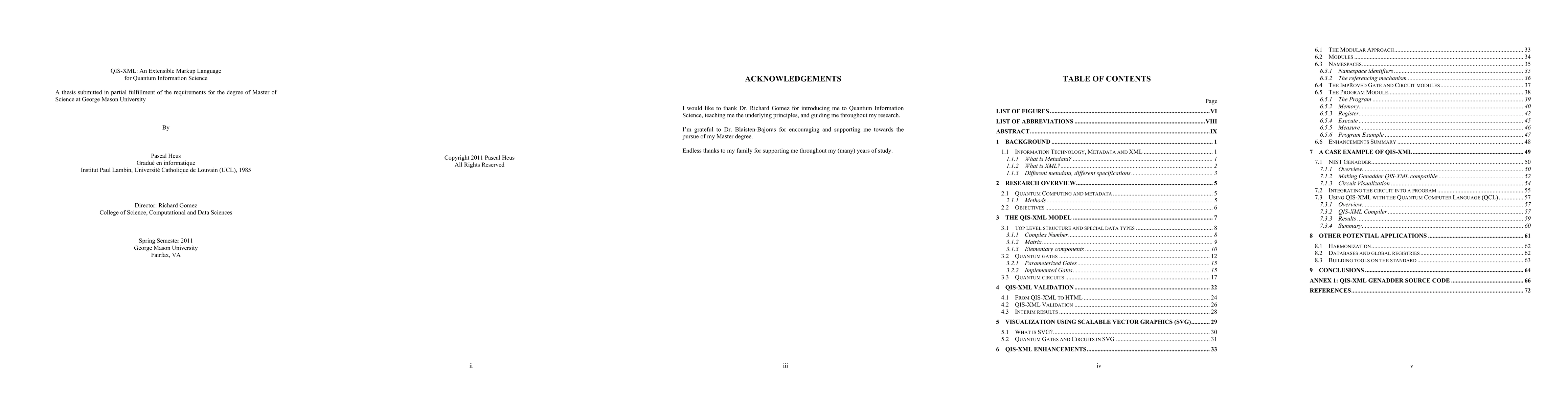 This Master thesis develops QIS-XML, an XML-based framework for describing and programming quantum computing, aiming to bridge Classic Information Science and Quantum Information Science. It presents a prototype XML specification for quantum gates and circuits, showcasing its potential to unify IT disciplines and facilitate quantum technology understanding.