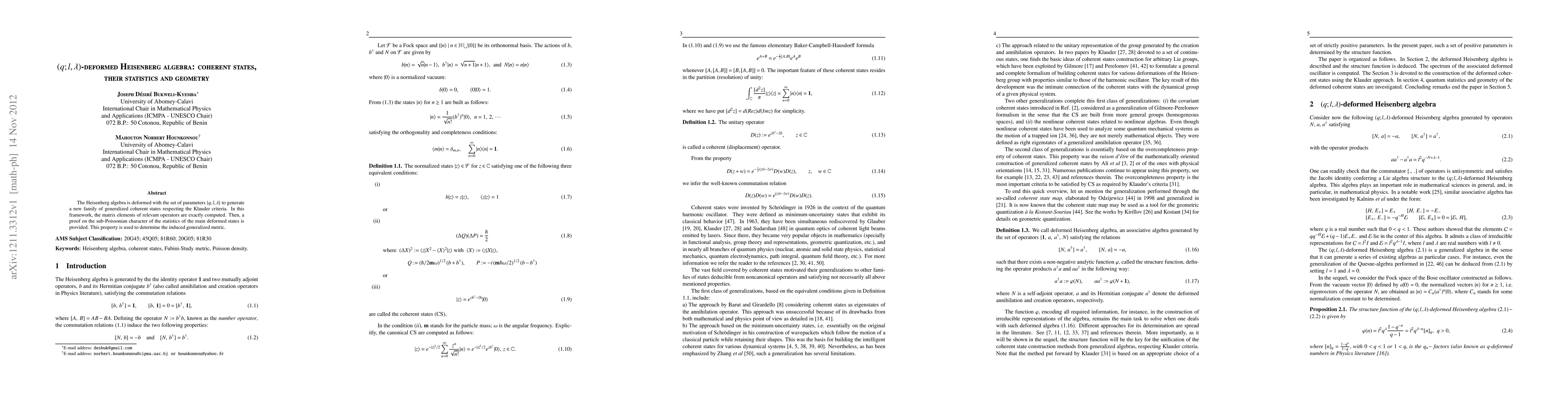 Researchers introduce a new family of generalized coherent states based on a deformed Heisenberg algebra with parameters $q$, $l$, and $eta$. These states exhibit sub-Poissonian statistics and a corresponding generalized metric.