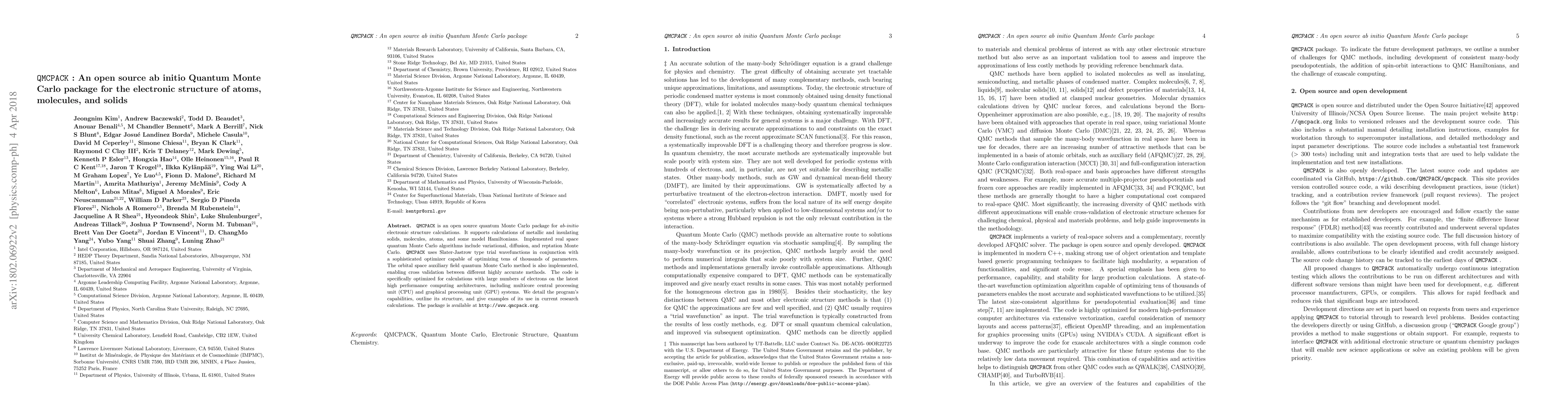 QMCPACK is an open-source quantum Monte Carlo package for ab-initio electronic structure calculations, optimized for high-performance computing on both CPUs and GPUs, and supporting a variety of algorithms and trial wave functions for accurate results in atoms, molecules, and solids. It is freely available at http://www.qmcpack.org.