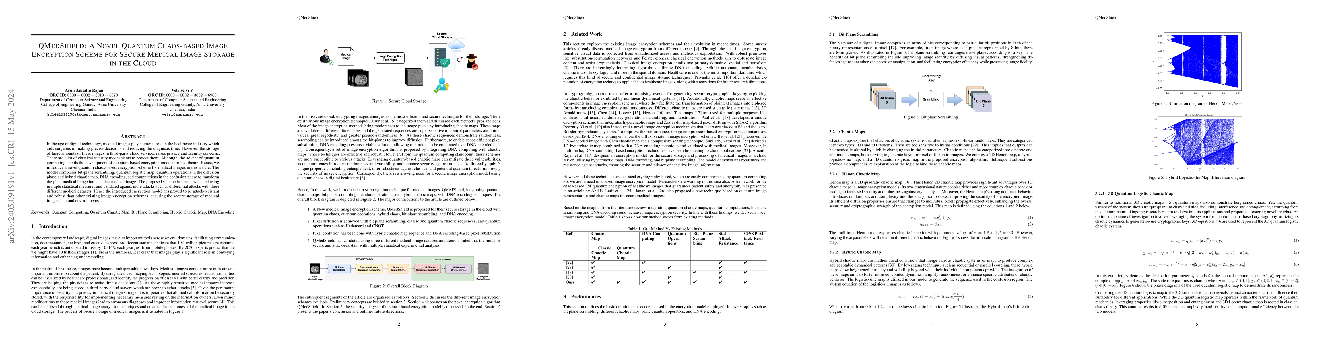 The paper proposes QMedShield, a quantum chaos-based encryption scheme for secure medical image storage in the cloud, using bit-plane scrambling, quantum logistic map, DNA encoding, and hybrid chaotic map. The model demonstrates strong resistance against various attacks, ensuring robust security for medical images.