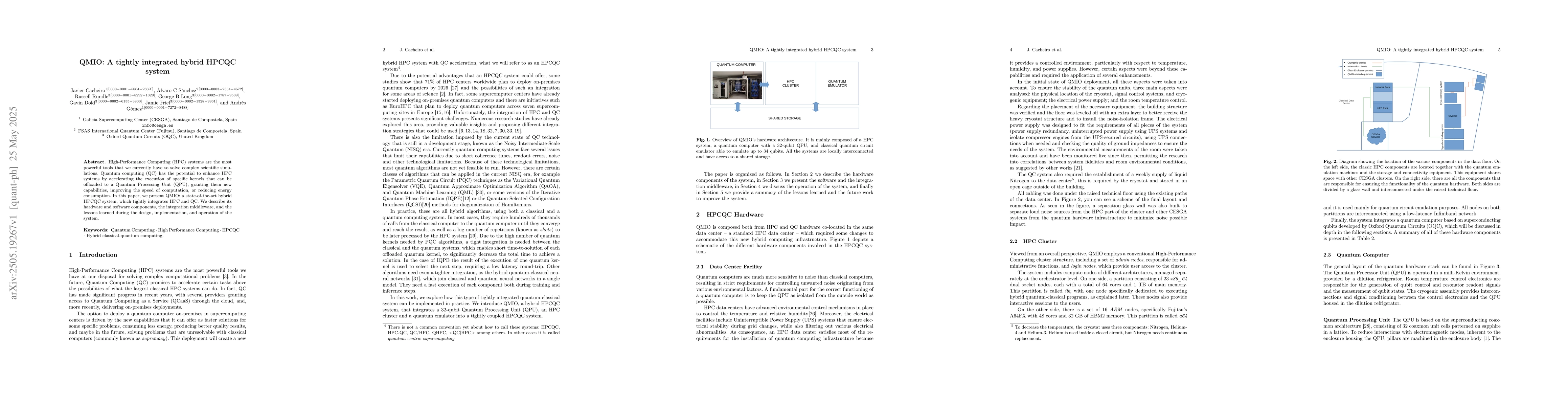 The development of QMIO, a hybrid HPCQC system with integration middleware for efficient interaction between HPC and QC components.