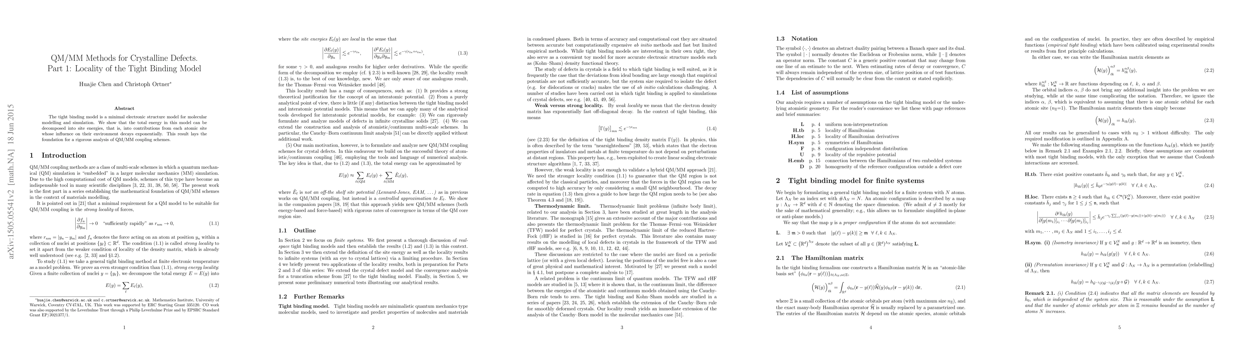 Researchers developed a way to break down the total energy of a tight binding model into site energies, showing how these contributions decay exponentially. This finding lays the groundwork for analyzing Quantum Mechanics/Molecular Mechanics coupling schemes.
