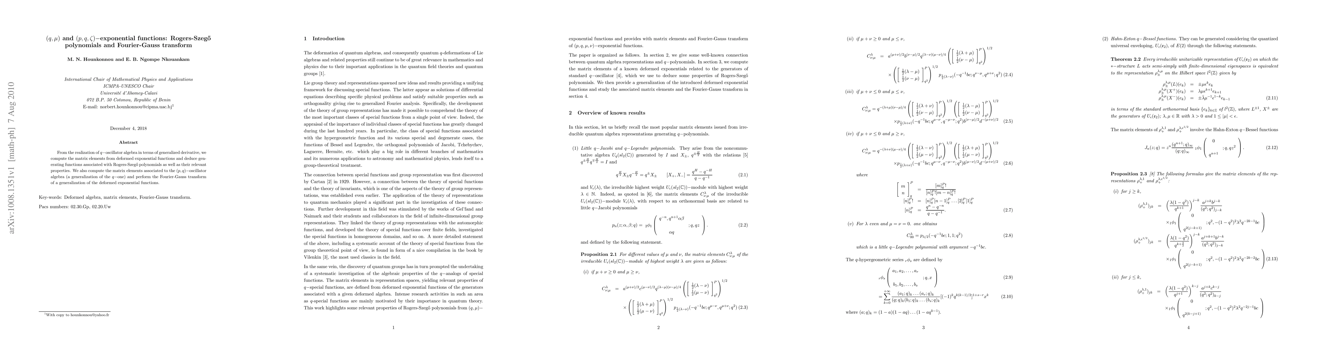 This paper computes matrix elements from deformed exponential functions, deduces generating functions for Rogers-Szegő polynomials, and performs a Fourier-Gauss transform on a generalization of deformed exponential functions associated with $(p,q)$-oscillator algebra.