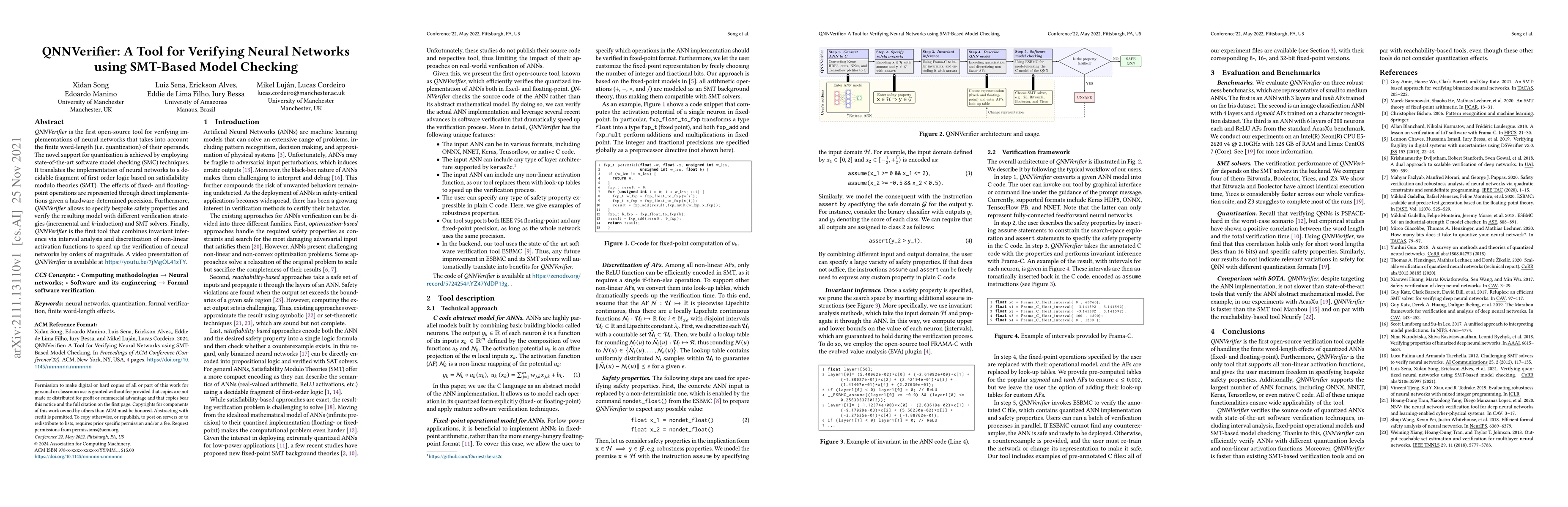 QNNVerifier is an open-source tool for verifying neural network implementations by considering quantization effects through SMT-based model checking, combining invariant inference and discretization techniques to significantly speed up verification. It supports various verification strategies and allows specification of custom safety properties.