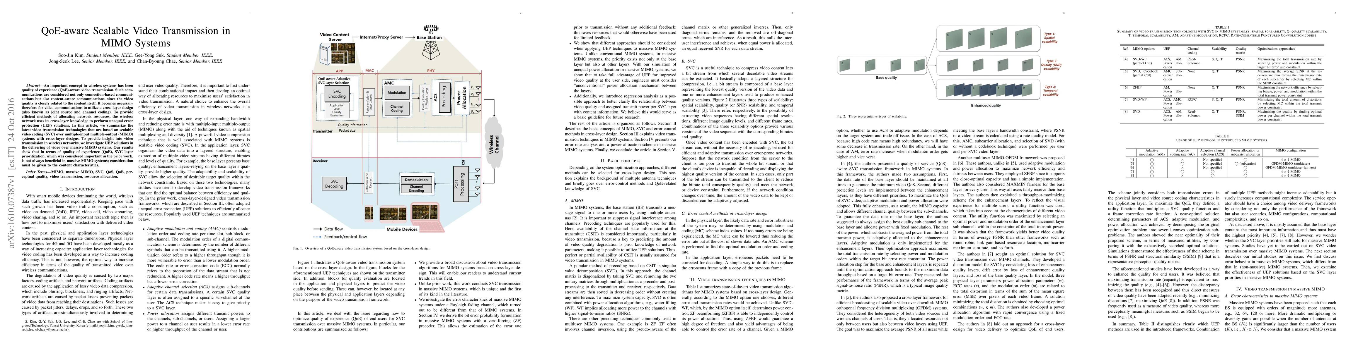 This paper explores QoE-aware video transmission in MIMO systems using scalable video coding (SVC) and cross-layer design, emphasizing that unequal error protection (UEP) solutions must adapt to content characteristics rather than relying solely on SVC layer prioritization for optimal QoE in massive MIMO systems.