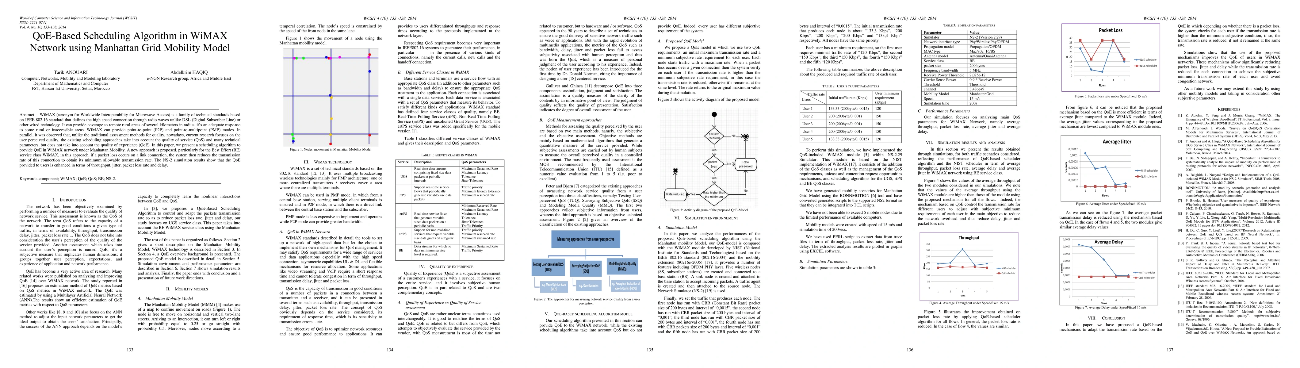 This paper proposes a QoE-based scheduling algorithm for WiMAX networks using the Manhattan Grid mobility model, focusing on enhancing user perceived quality. The algorithm adjusts the transmission rate to minimize packet loss, improving throughput, jitter, packet loss rate, and delay, as demonstrated by NS-2 simulation results.