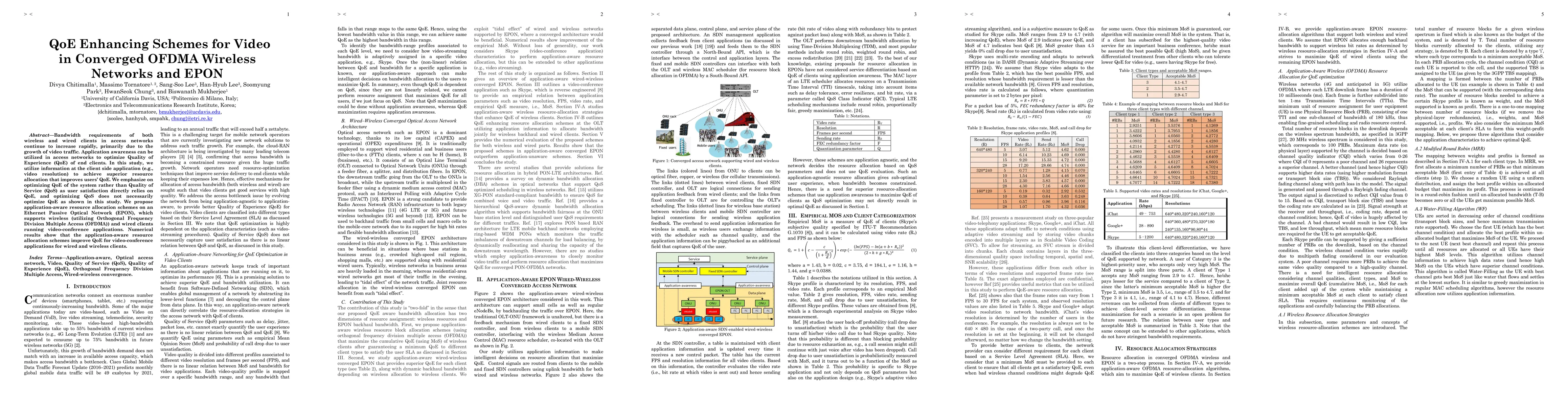 This paper proposes application-aware resource-allocation schemes to enhance the quality of experience (QoE) for video-conference applications in converged OFDMA wireless networks and Ethernet passive optical networks (EPONs). The application-aware approach optimizes resource allocation based on client-side information, demonstrating improved QoE over traditional QoS-focused methods.