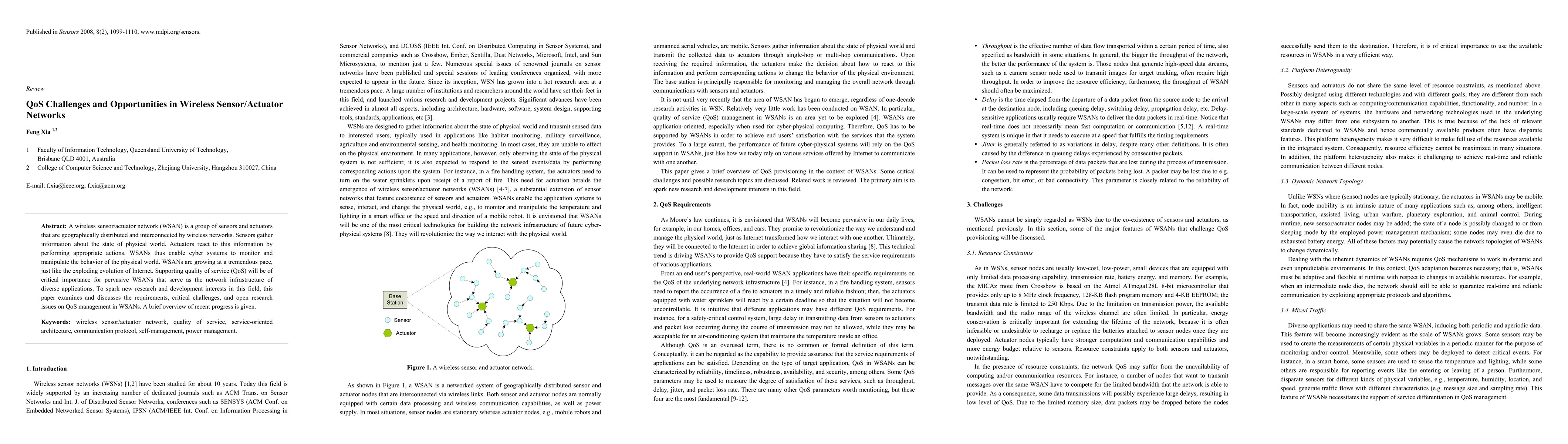 This paper explores the challenges and opportunities in managing quality of service (QoS) in wireless sensor/actuator networks (WSANs), highlighting the need for effective QoS support to enable diverse applications. It discusses critical issues and open research questions in QoS management, along with a brief overview of recent advancements.