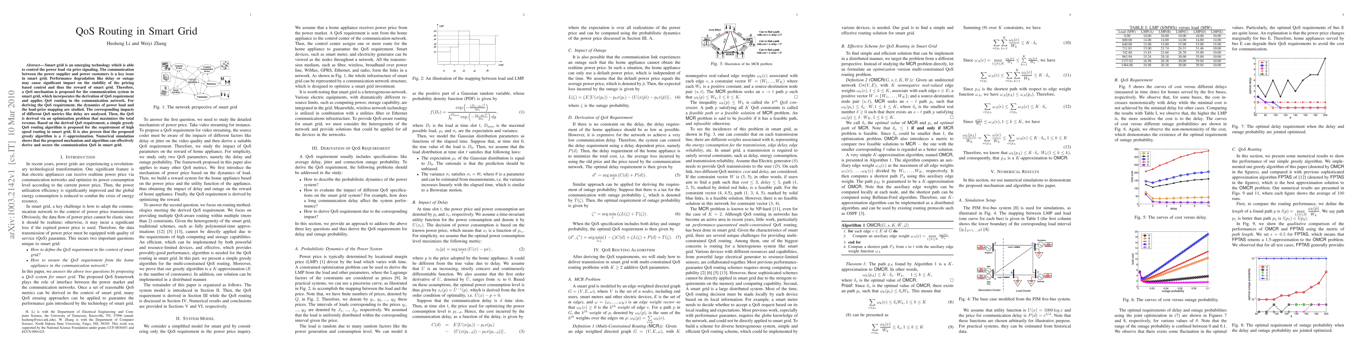 This paper proposes a QoS mechanism for smart grid communication, deriving QoS requirements based on power load dynamics and optimizing for total revenue. A simple greedy QoS routing algorithm is introduced, proven to be a $K$-approximation, and shown through simulations to effectively secure communication QoS in smart grids.