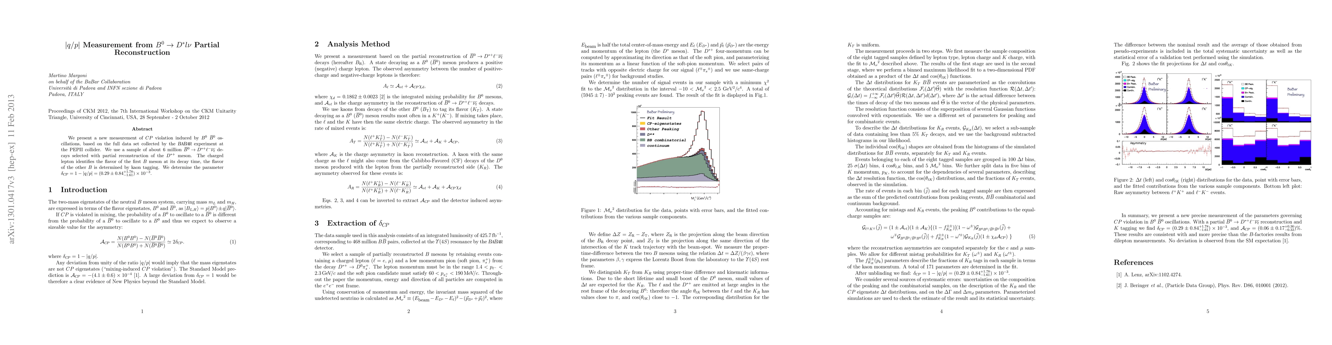 We present a new measurement of CP violation induced by B0 B0bar oscillations, based on the full data set collected by the BaBar experiment at the PEPII collider. We use a sample of about 6 million B0->D* l nu decays selected with partial reconstruction of the D* meson. The charged lepton identifies the flavor of the first B meson at its decay time, the flavor of the other B is determined by kaon tagging. We determine the parameter dCP = 1 - |q/p| = (0.29+-0.84+1.78/-1.61) 10^-3.