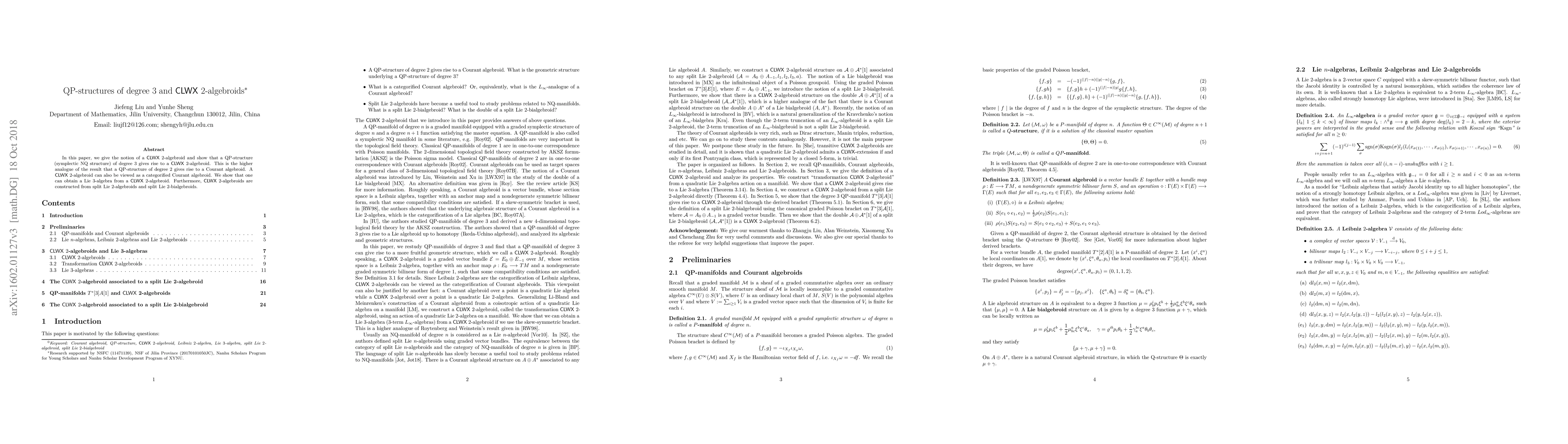This paper introduces the concept of a CLWX 2-algebroid and demonstrates that a QP-structure of degree 3 yields such a structure, extending the relationship between degree 2 QP-structures and Courant algebroids. It also shows the construction of a Lie 3-algebra from a CLWX 2-algebroid and its derivation from split Lie 2-algebroids and split Lie 2-bialgebroids.